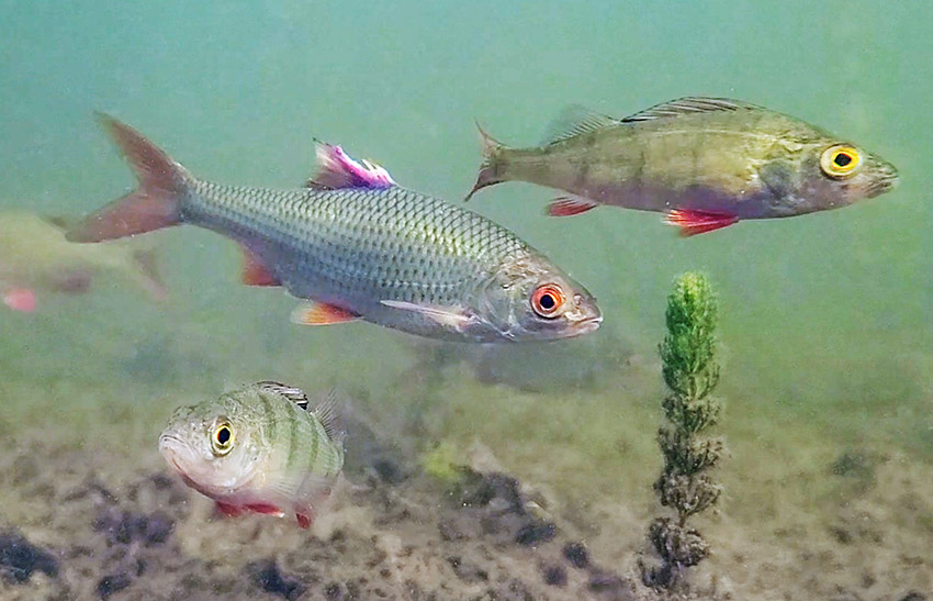 13. 6. 2025. Berlin. Tegeler See. Fische. Barsche. Algen. Standbild aus einem Video. Samsung Galaxy S20 FE