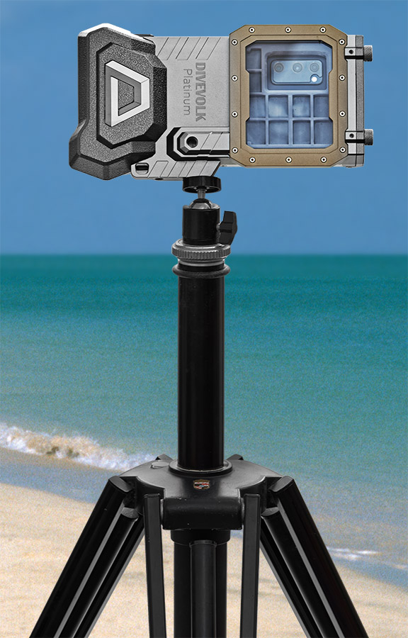 Divevolk Seatouch 4 Max Platinum auf einem Stativ