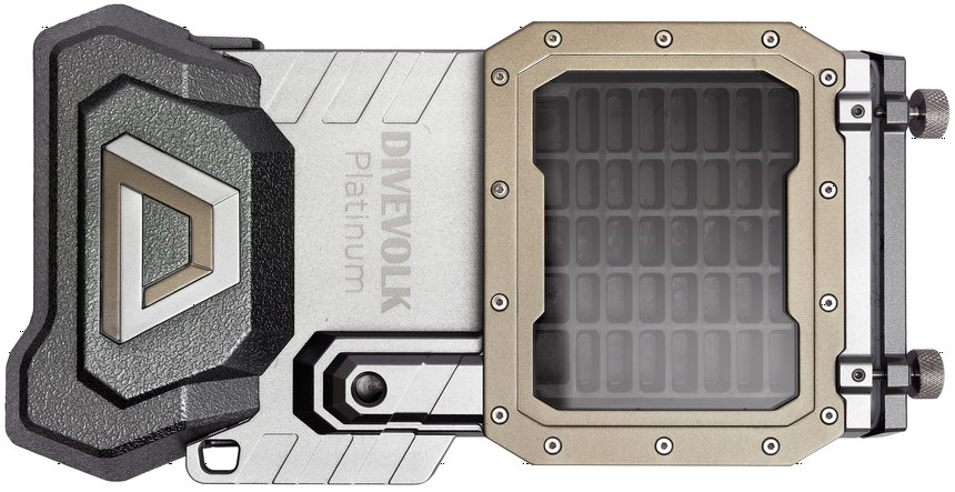 2024 brachte Divevolk mit dem SeaTouch 4 Max Platinum ein weiteres Unterwassergehäuse für Smartphones heraus. Es hat einen robusten Rahmen aus Aluminium mit zwei 1/4 Zoll Stativgewinde und einem abnehmbaren Arm für Filter und optische Vorsätze.