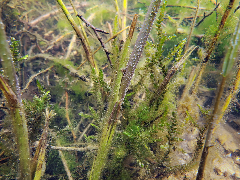 Wasserpflanzen am Schilfgürtel in Ufernähe. Samsung S20 FE im Divevolk SeaTouch 4 Max.