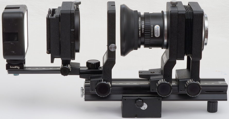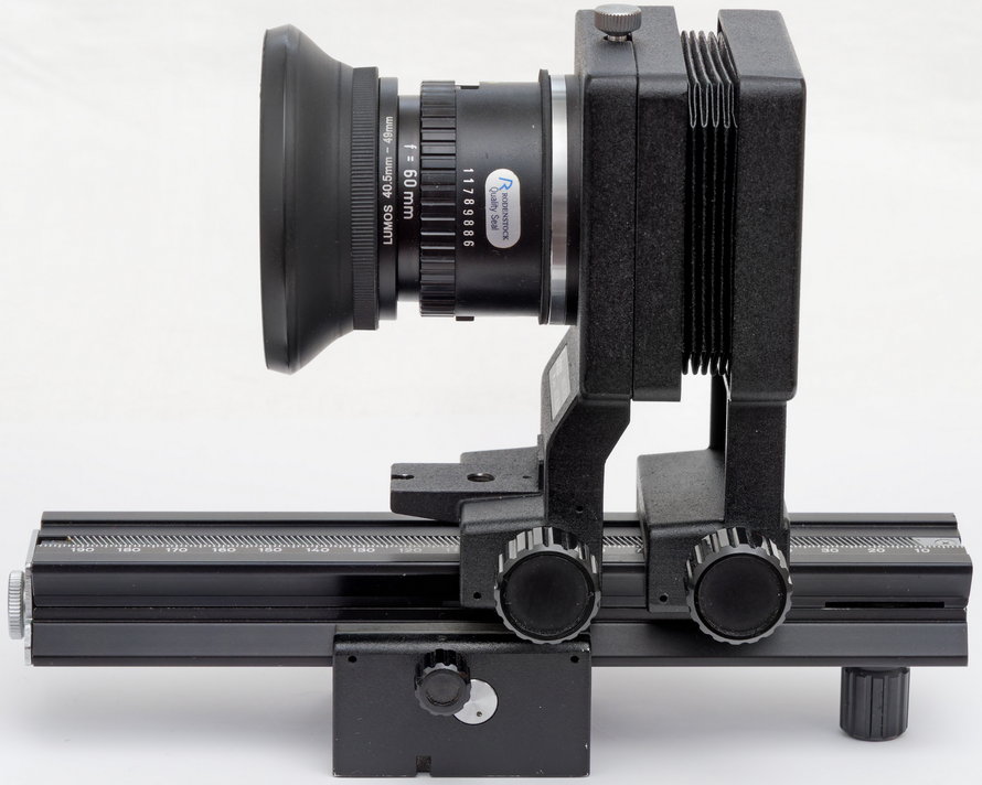 Dieses japanische Balgengerät wurde für viele Kameraanschlüsse gebaut. Die Balgengeräte tragen dann die entsprechenden Marken, wie Konica oder Minolta. Auf Versionen mit M42 Anschluss - der am durch billige Adapter am universellsten ist - steht u.a. entweder Unitron oder Soligor.
