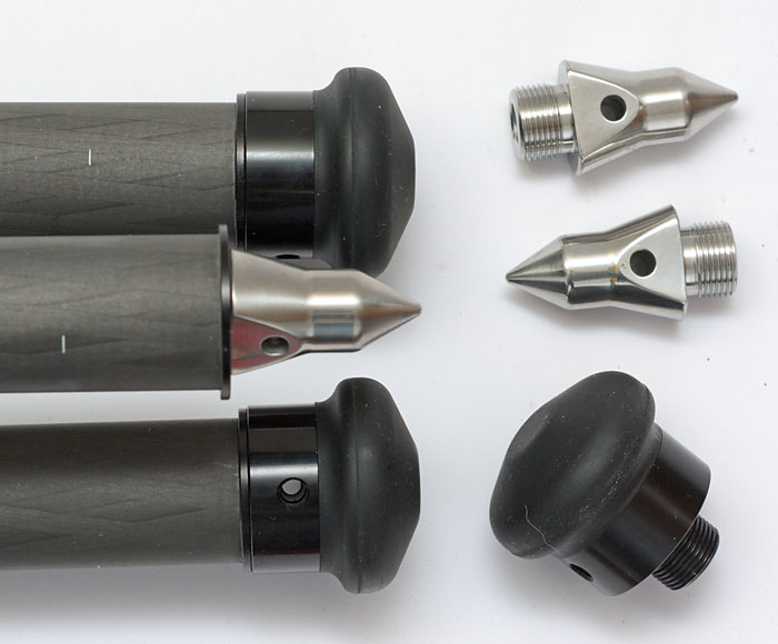 Gummifüße oder Spikes. Sie sind je nach Boden einzusetzen, um ein Verrutschen zu verhindern.
