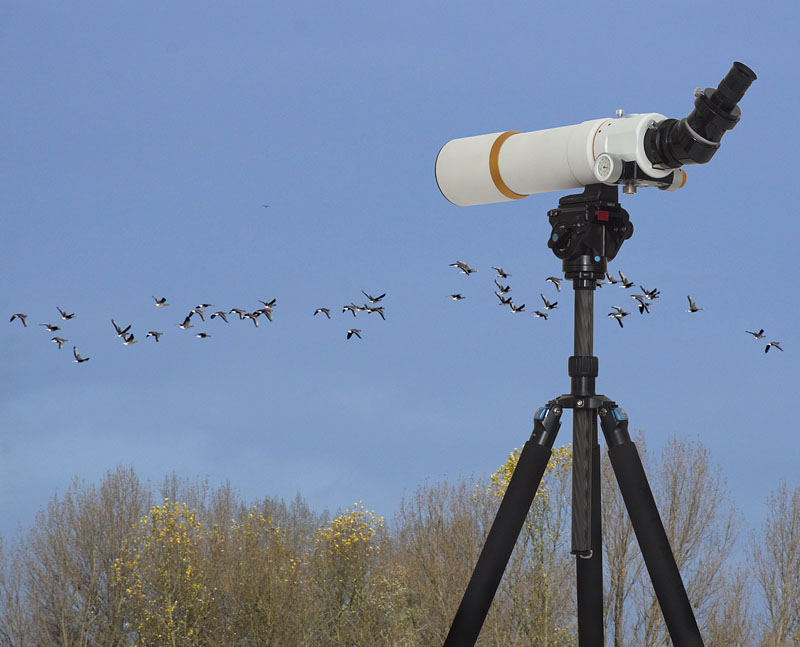 In der Naturbeobachtung durch 80mm Spektive (entspricht dem genannten Teleskop) werden Vergrößerungen zwischen 20 - 40 x angestrebt. Es geht auch mehr, aber nur mit Abstrichen bei der Brillanz und Helligkeit. Zudem flimmert die Luft oft zu stark, um höher zu vergrößern. Für diesen Vergrößerungsbereich mit einem guten Spektiv oder einem entsprechenden Refraktor aus der Astronomie ist das Sirui R-3213X hervorragend geeignet.