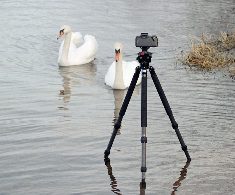 Siuri Carbonstativ im Wasser. Da sind selbst die Schwäne neugierig.