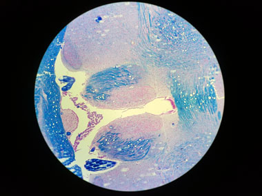 2016 © Thomas GadeWas wir mit dem Auge am Mikroskop sehen, kann man auch fotografieren. Entweder muss dafür eine Kamera mit ihrem eigenen Objektiv anstelle des Auges in das Okular blicken oder man verwendet einen speziellen Fotoadapter mit integrierter Optik, an den ein Kameragehäuse montiert wird. Bei der Verbindung aus Kamera und Mikroskop erfolgt eine optische und mechanische Adaptierung.