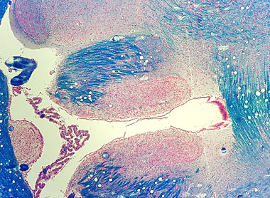 ![]() MF 4x Projektiv mit Pentax Mikroskopadapter. Der Bildrand ist unscharf und das Bildfeld ist eng begrenzt. |