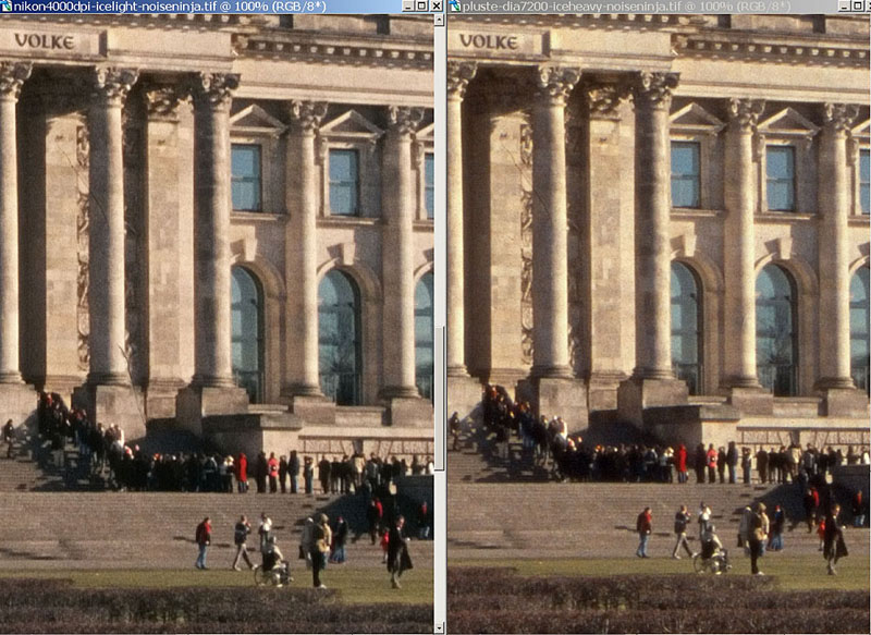 Links Nikon, rechts Plustek: