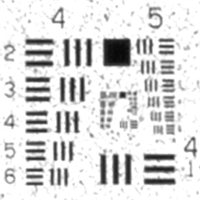 Anders als bei dem Test aus dem Jahre 2006 würde man längst nicht mehr die Einstellung 'Heavy' für die Infrarotreinigung mit VueScan einstellen. Die Stufe 'Light' oder 'leicht' reicht völlig aus. Dadurch wird das Bild etwas weniger weich gezeichnet. Etwaige Defekte, die dadurch nicht beseitigt wurden und im Bild noch stören, werden mit dem Reparatur-Pinsel oder mit der Funktion 'inhaltsbasiert füllen' im Photoshop beseitigt.Auflösung gemäß USAF-1951 Testmotiv