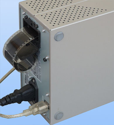 Optional gibt es einen automatischen Diawechsler. Man kann damit bis zu 50 gerahmte Dias (je nach Dicke der Rahmen) stapelweise scannen. Zusätzlich gibt es die Möglichkeit, unzerschittene lange Filmstreifen automatisch zu scannen.