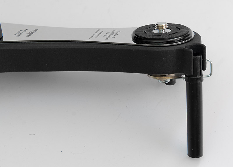 Je nach Länge und Gewicht der Kamera sowie ihrer Ausrichtung auf dem Kugelkopf ist eventuell eine Abweichung von einer Balance auszugleichen. Dafür gibt es auf der Unterseite der Nachführeinrichtung eine Ausgleichfeder, die auf mehrere Stufen eingestellt werden kann.