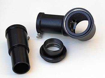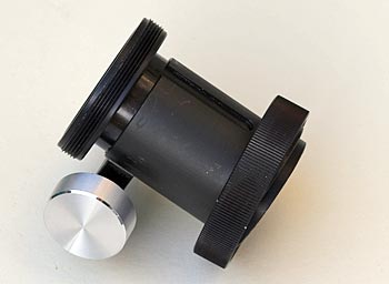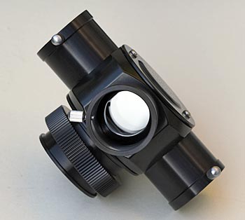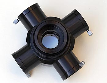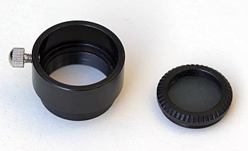 Filterdapter Anstatt ein Filter in ein Okular zu schrauben wird hier ein Zwischentubus mit dem Filter eingesetzt. Das erlaubt ein rasches Wechseln der Okulare.