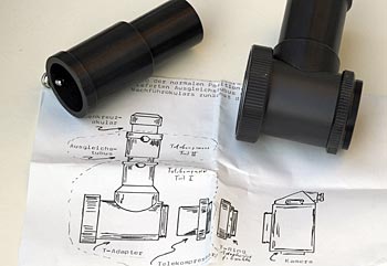 Kameraadapter Der kurze Tubus wird teleskopseitig mit dem SC-Gewinde verschraubt. Kameraseitig kommt ein T-2 Adapter, für den es weitere Adapter für nahezu alle gängigen Spiegelreflextypen gibt, zum Einsatz.