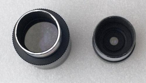 Das 7,5mm Okular hat deutlich kleinere Linsen, die vollkommen ausreichen, um einen kleinen Bildausschnitt stark zu vergrößern. Der volle Bildkreis dieser kurzen Brennweite kann nur gesehen werden, wenn das Auge nahe am Okular ist.