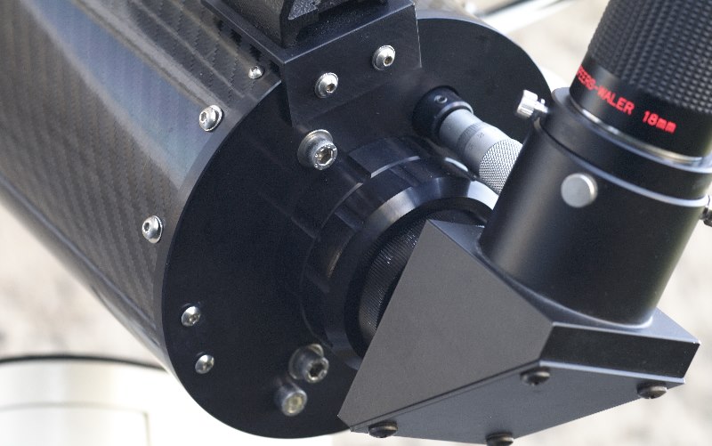Die Scharfstellung erfolgt über eine Mikrometerschraube mit Skala. Für den einen ist das Schnickschnack und für den anderen brauchbar, um sich für diverse Okulare, Binos und Kameras Einstellwerte zu merken. Am getesteten Exemplar ist kein Shifting feststellbar.